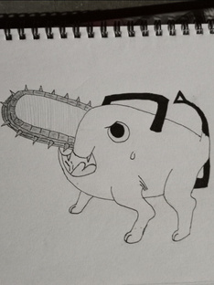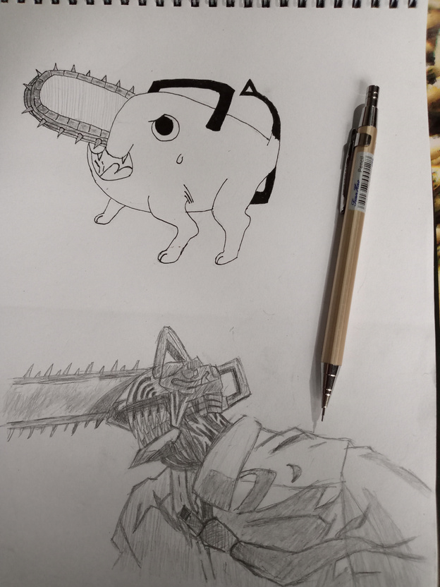 This is my first sketch in my new sketchpad pochita and denji from anime chainsaw man.